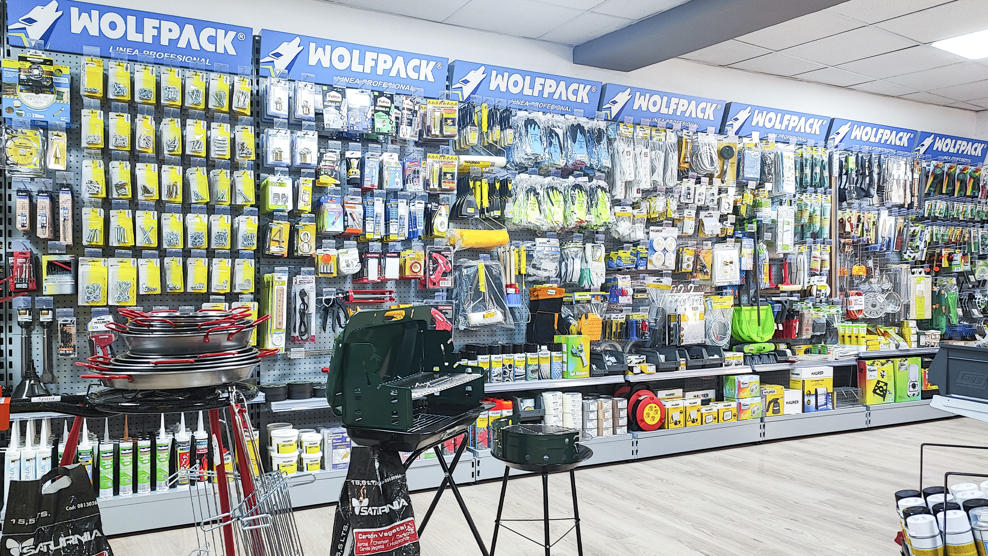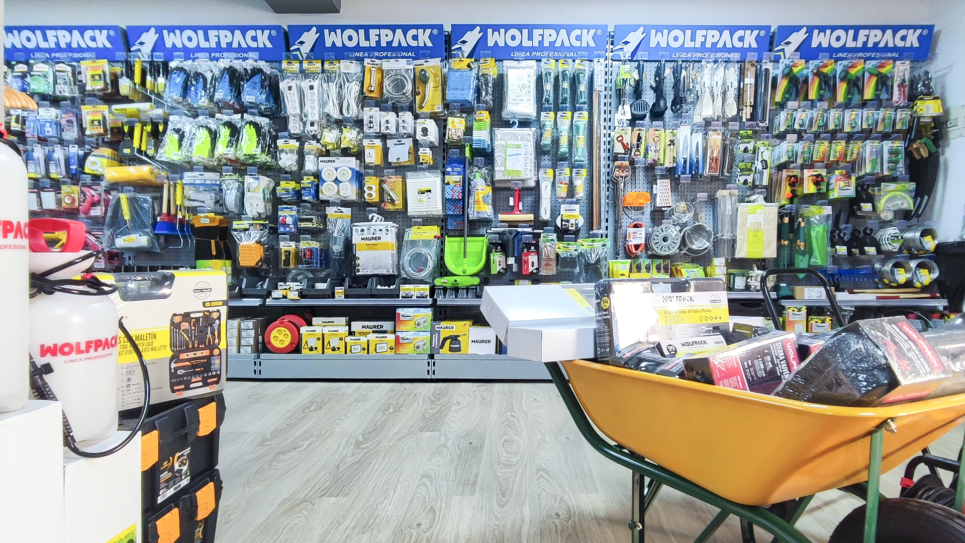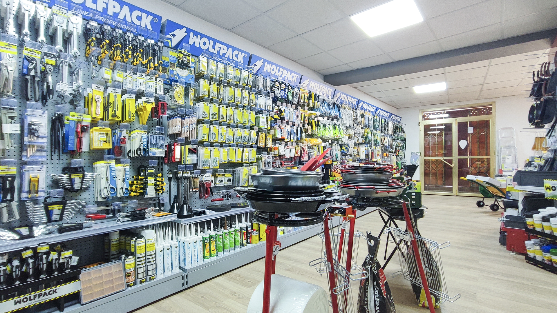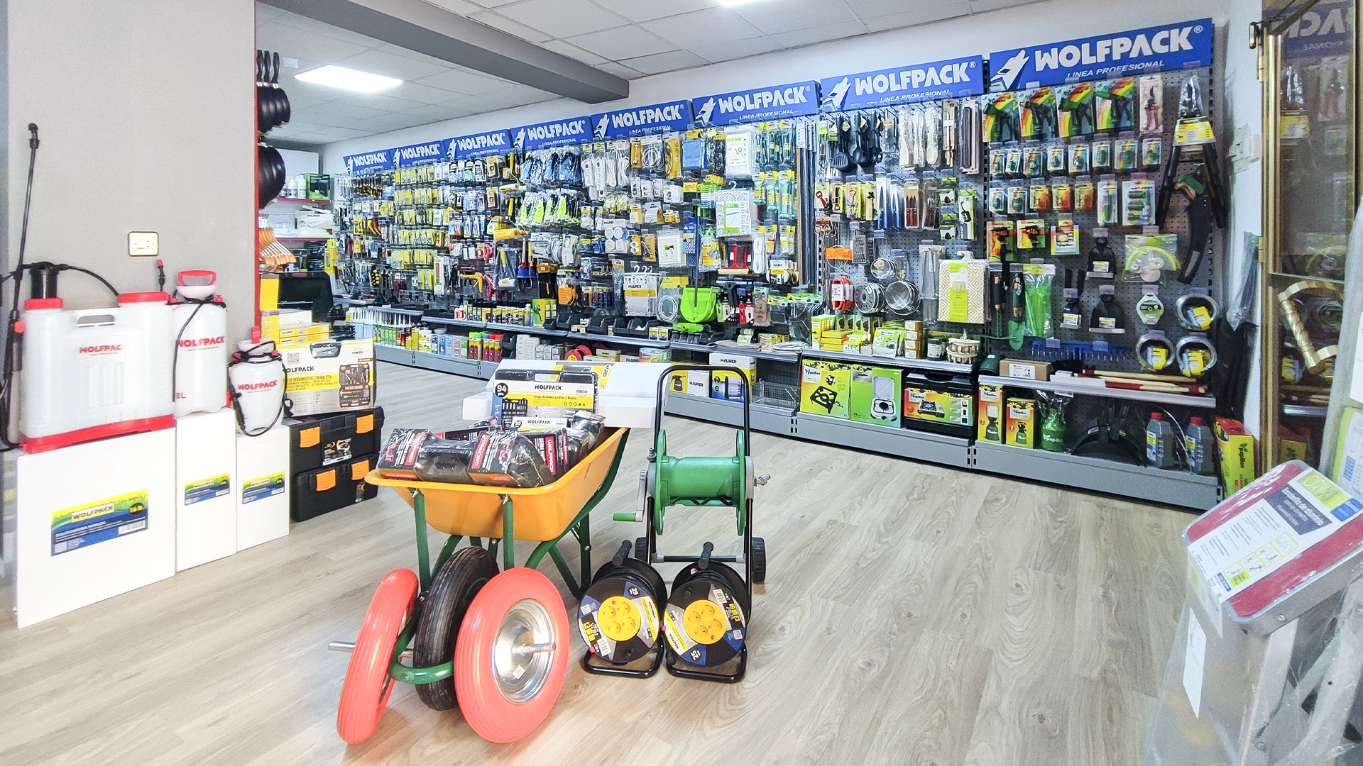 El cliente, asesorado por nuestro equipo de implantaciones, opta por surtido muy variado que abarca desde herramientas y bricolaje, pasando por electricidad básica y fontanería, menaje y jardín.