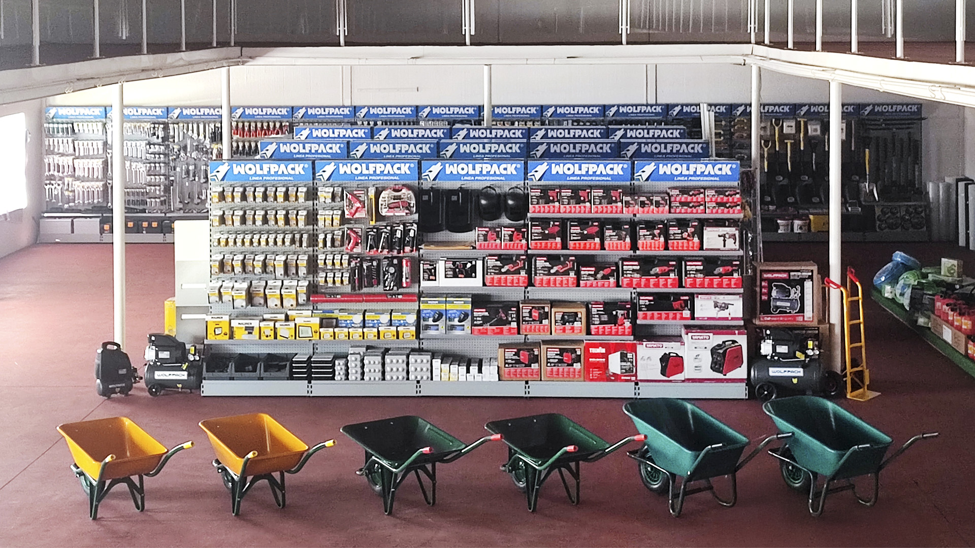 El cliente, asesorado por nuestro equipo de implantaciones, opta por surtido muy variado que abarca desde herramientas y bricolaje, pasando por electricidad básica y fontanería, menaje y jardín.