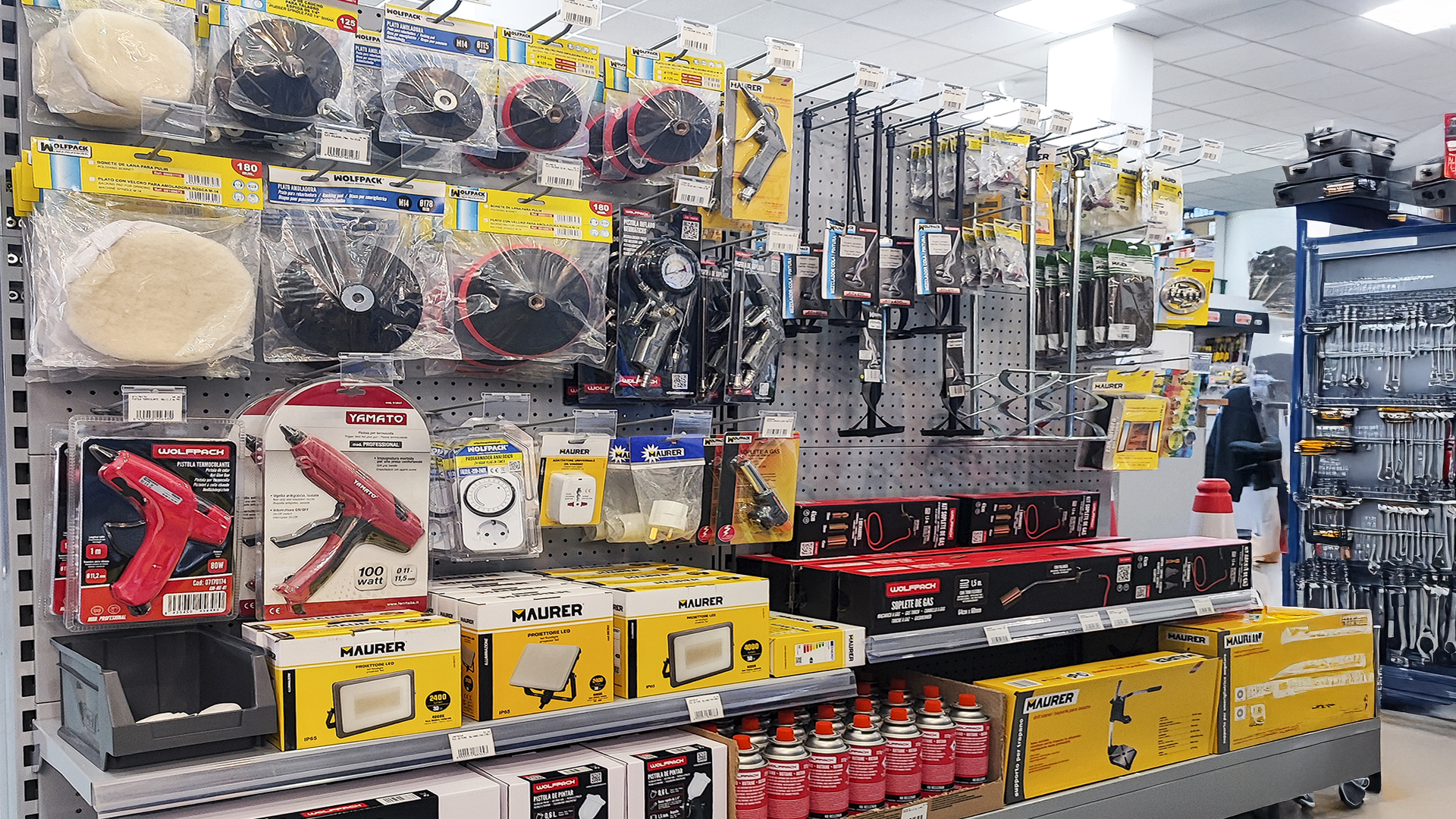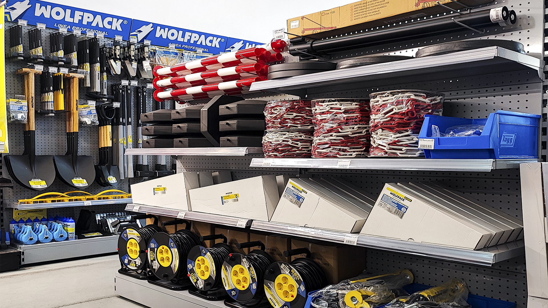 El cliente, asesorado por nuestro equipo de implantaciones, opta por surtido muy variado que abarca desde herramientas y bricolaje, pasando por electricidad básica y fontanería, menaje y jardín.