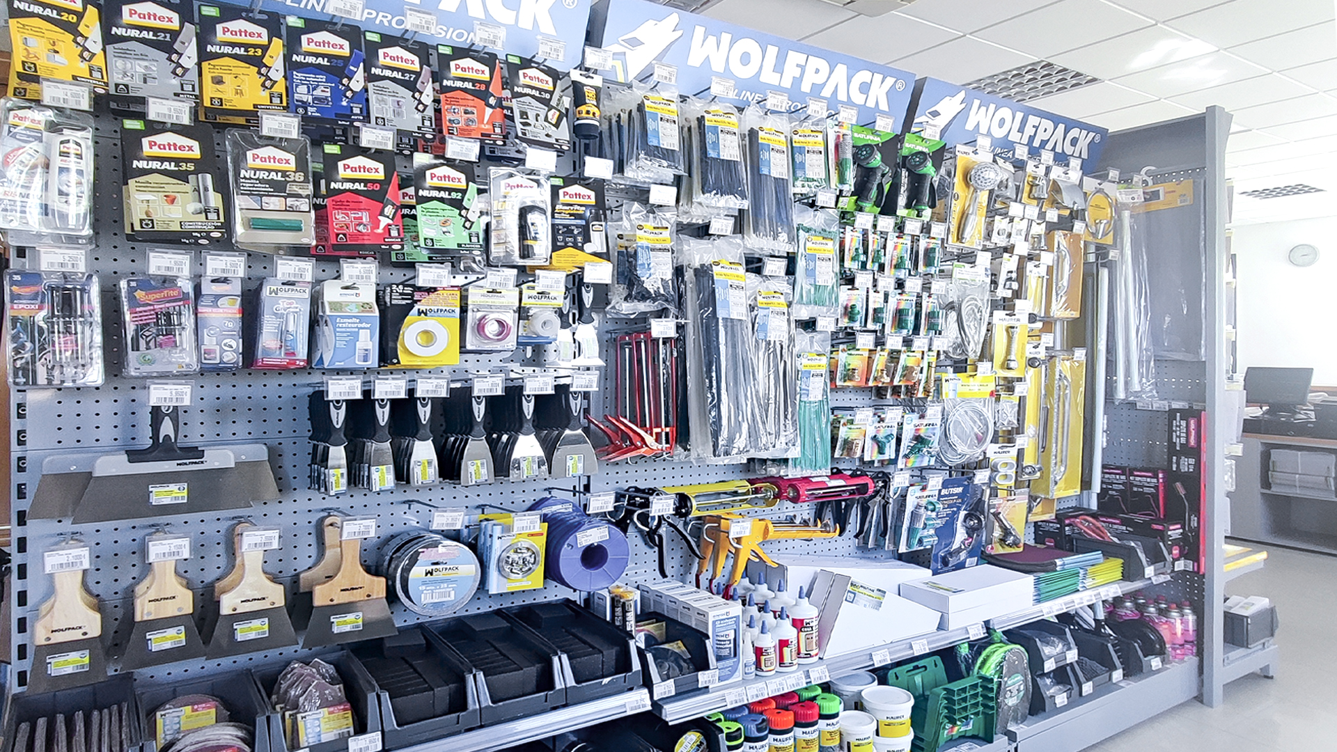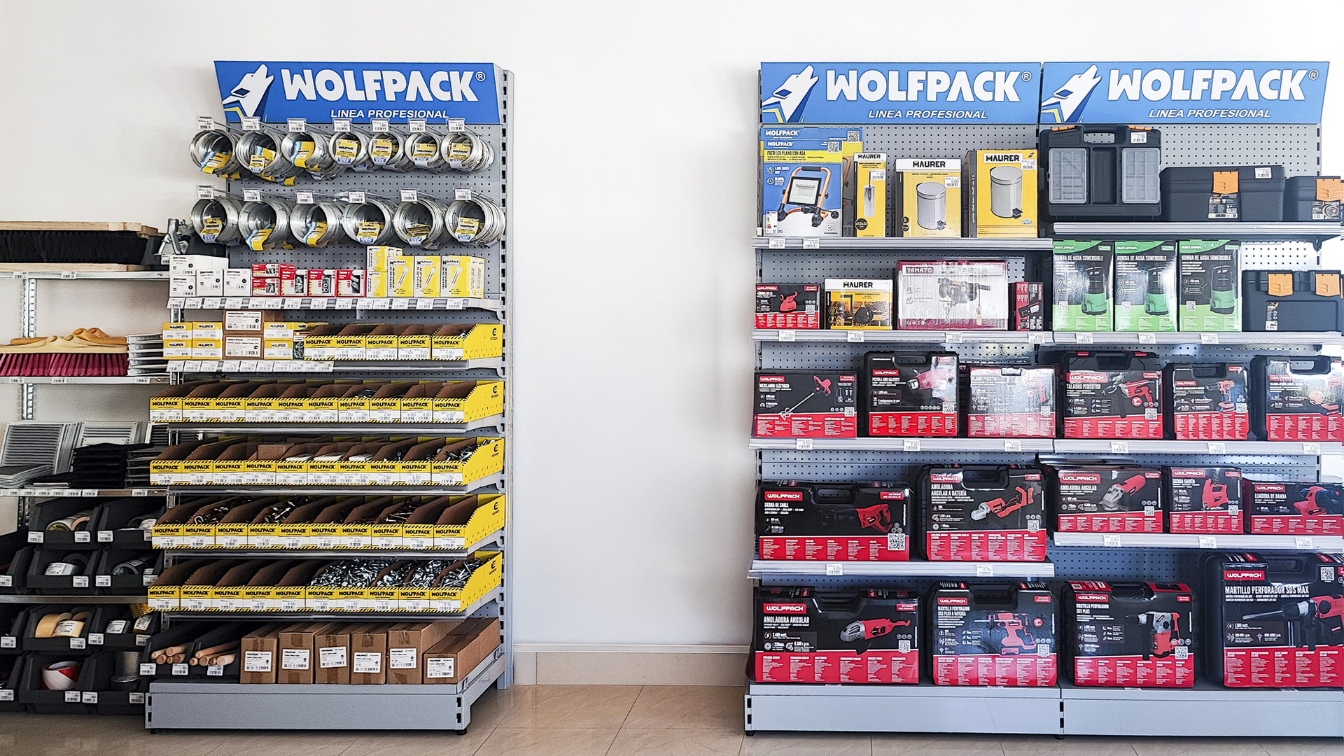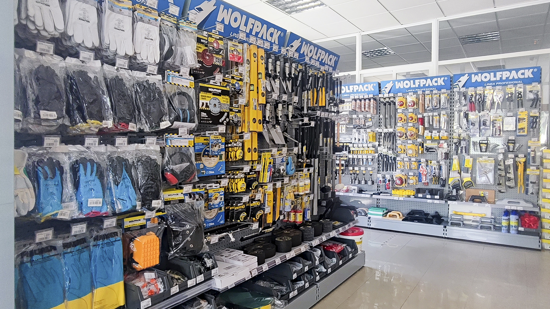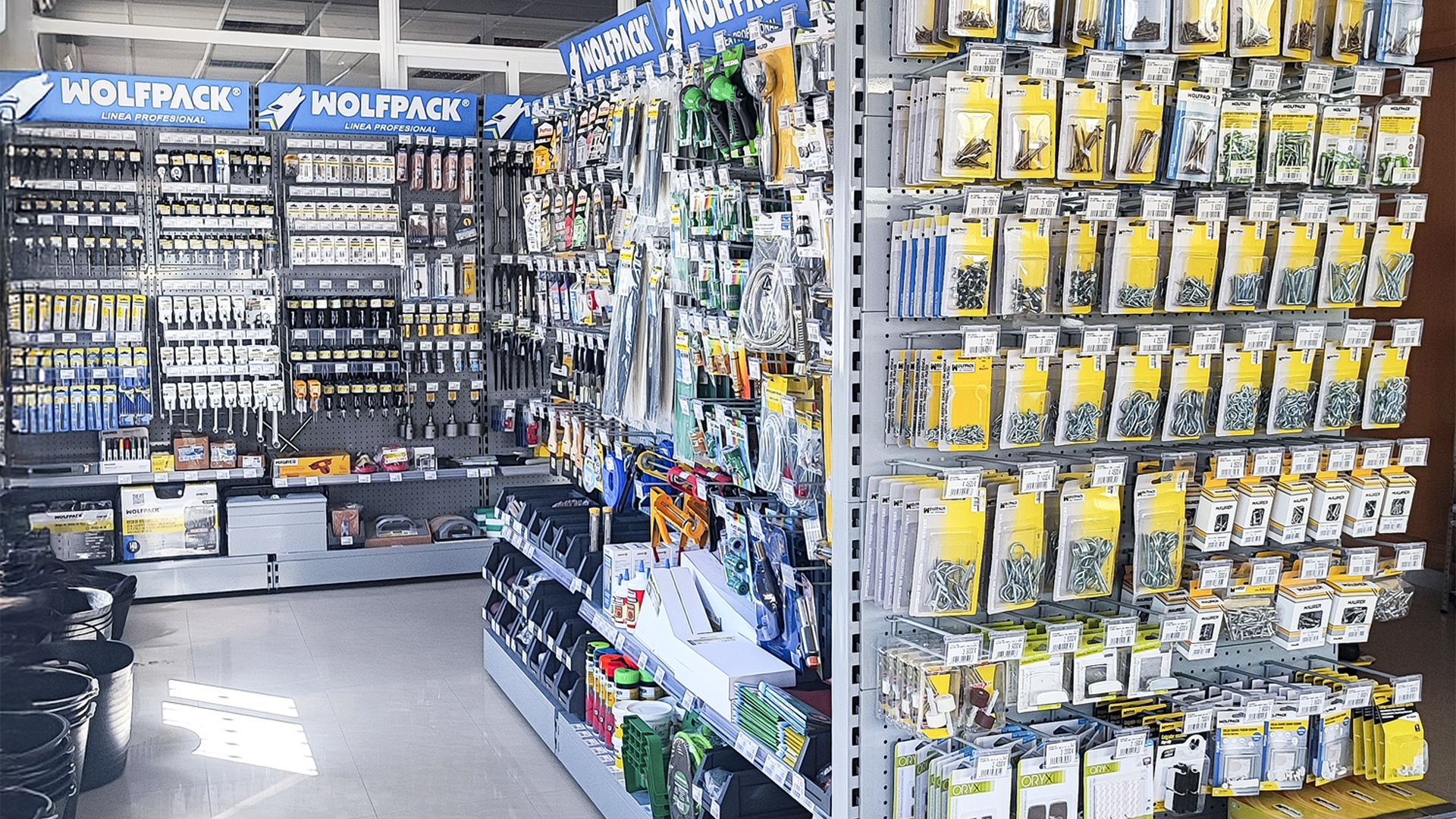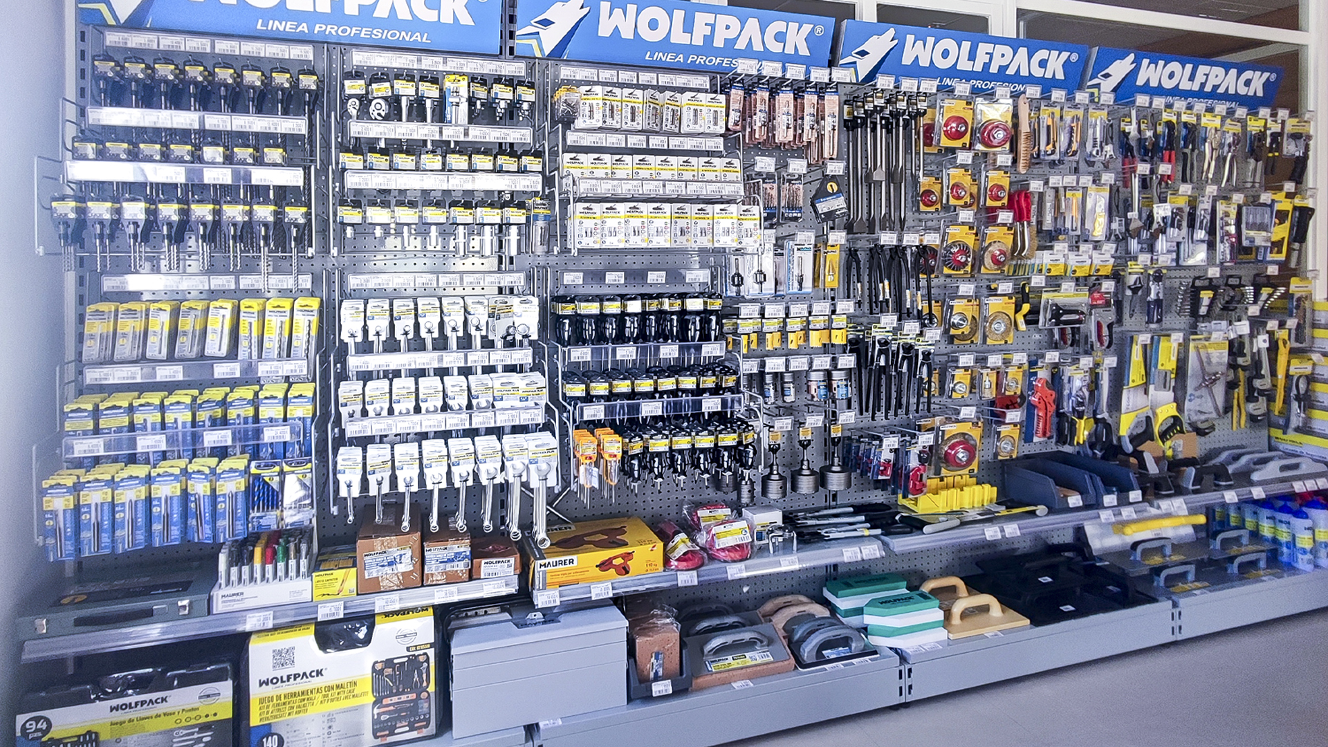 El cliente, asesorado por nuestro equipo de implantaciones, opta por surtido muy variado que abarca desde herramientas y bricolaje, pasando por electricidad básica y fontanería, menaje y jardín.