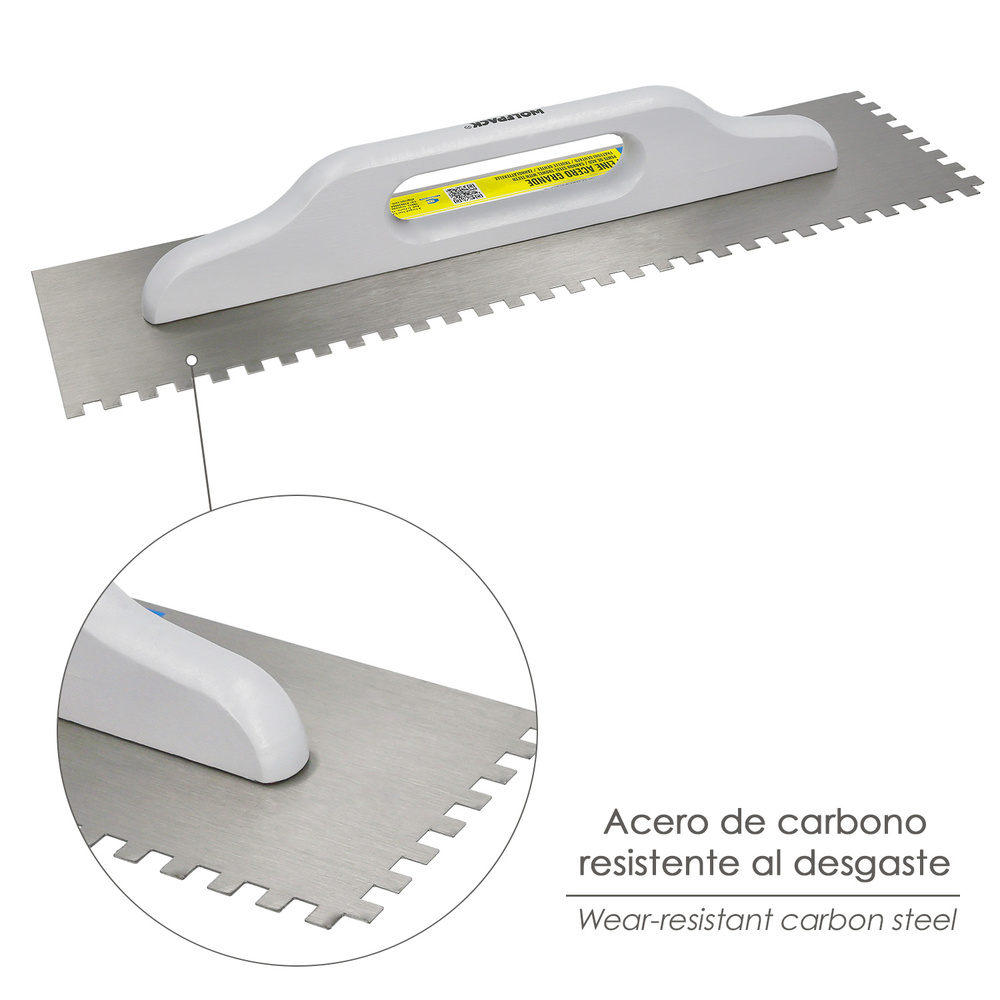 - Su principal uso es el acabado liso de superficies, repellar paredes, extender cementos, cementos cola, yesos, morteros, etc.