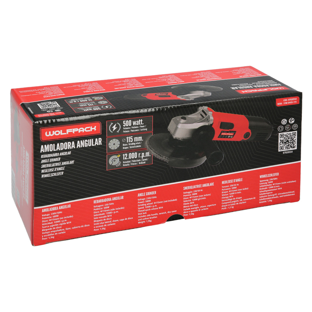 - Amoladora 500 Watt. Ø 115 mm. 12.000 R.P.M.