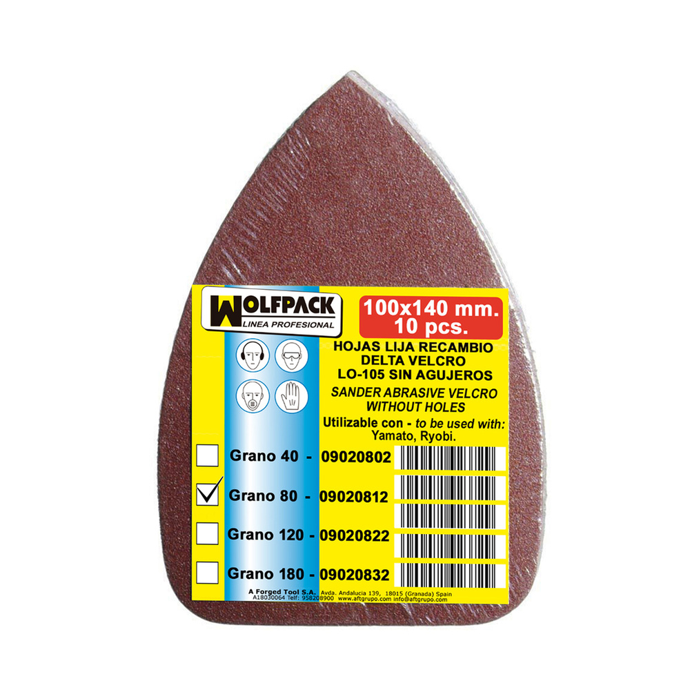 Lija Recambio Delta 140x100 mm. sin Agujeros Grano 80 (10 Piezas)