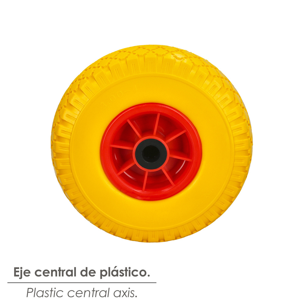 DESCRIPCIÓN:Rueda carretilla sacos maciza llanta plástico 20 Eje Central.