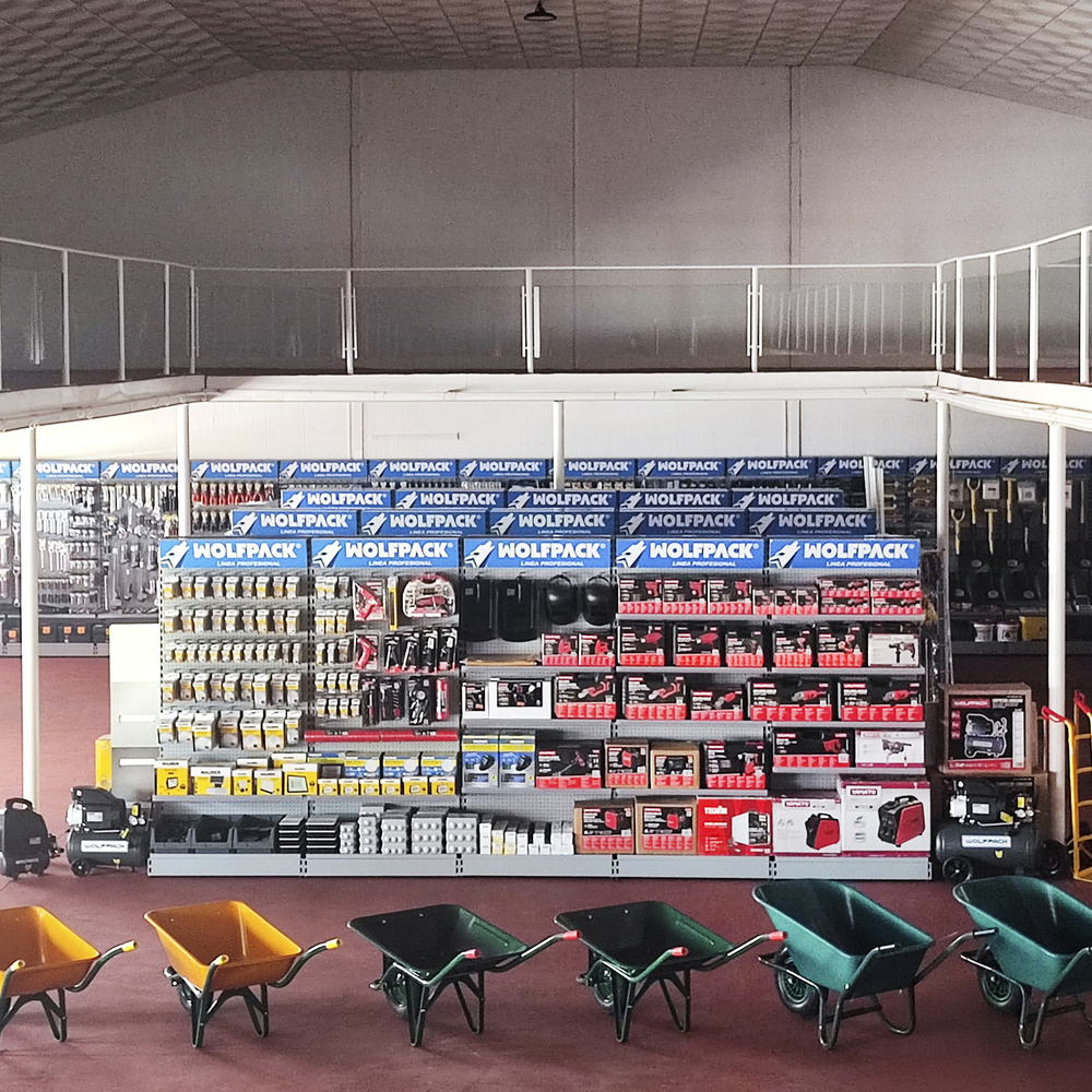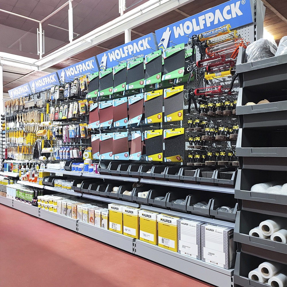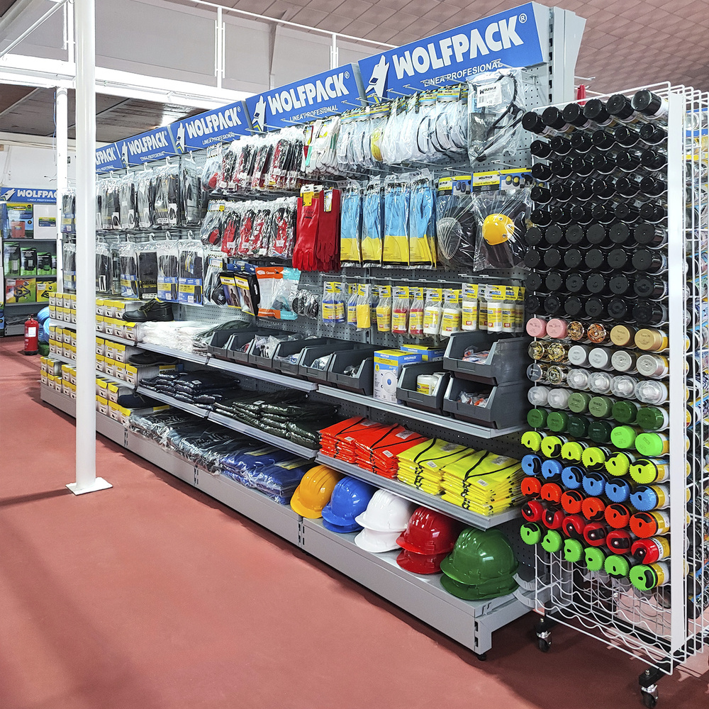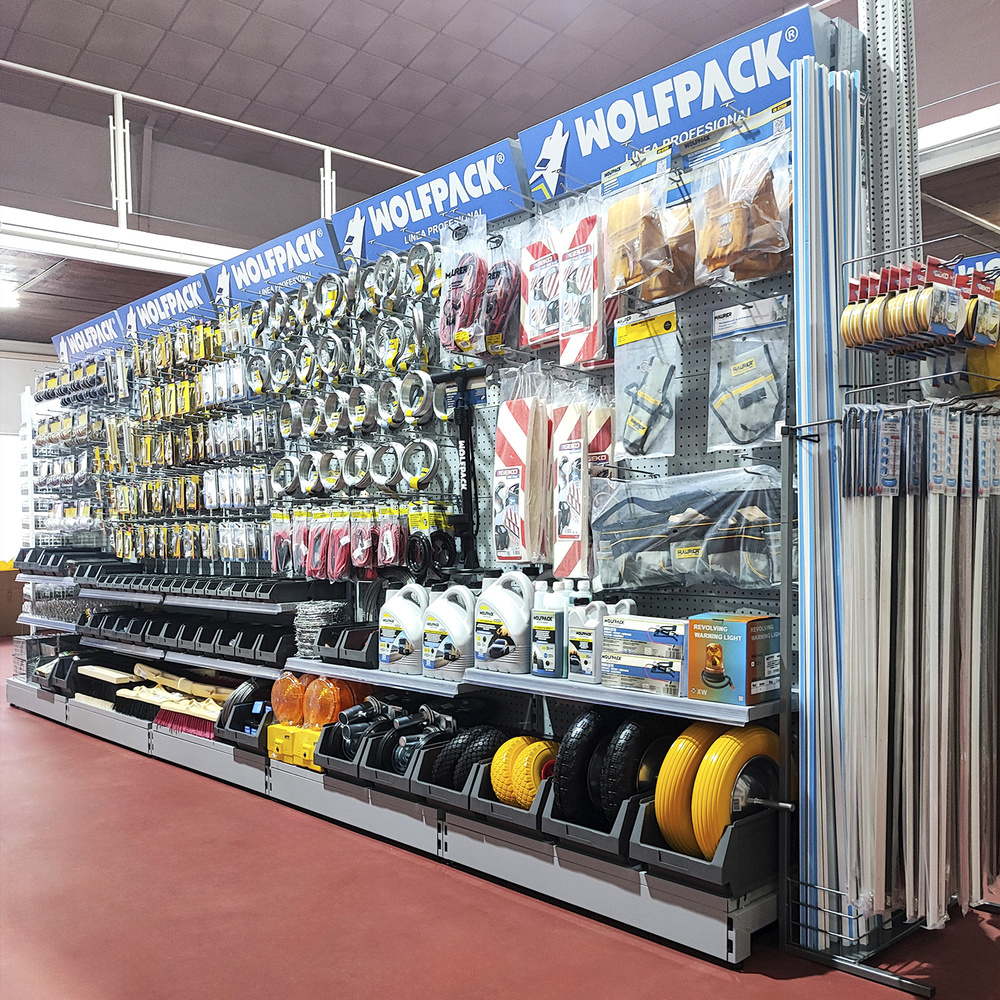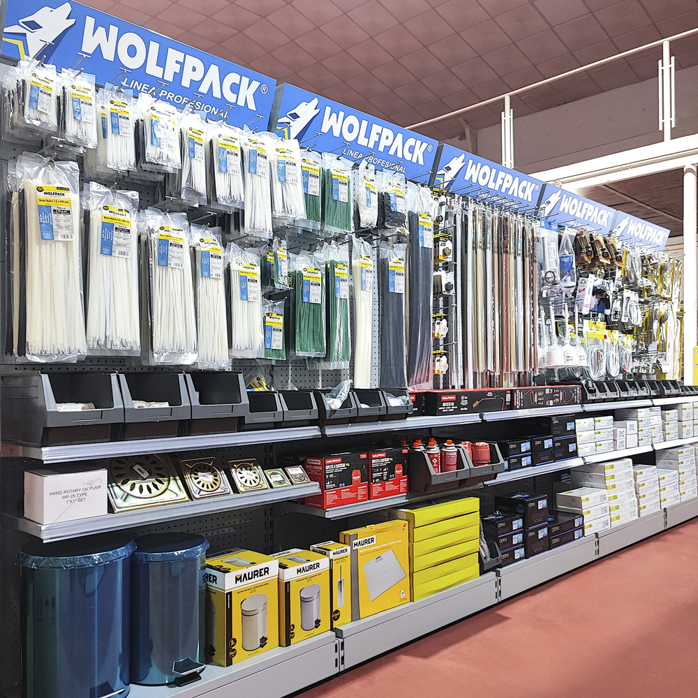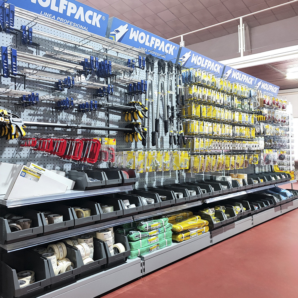 El cliente, asesorado por nuestro equipo de implantaciones, opta por surtido muy variado que abarca desde herramientas y bricolaje, pasando por electricidad básica y fontanería, menaje y jardín.